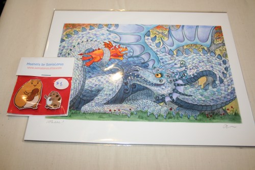 I also picked up this great print from SepiaLepus, who, I just found out, lives in the same town as I do. I couldn’t resist the magnets as well, which are happily co-habitating on my fridge at the moment: